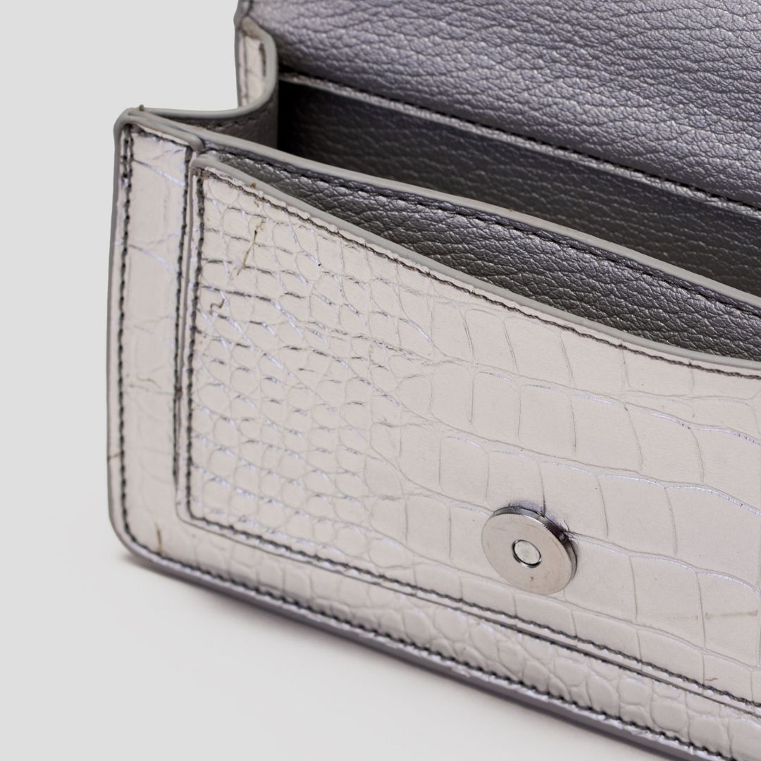 β’ Comes with an attached short chain for a luxe handheld look and a detachable long metal chain for effortless crossbody styling.